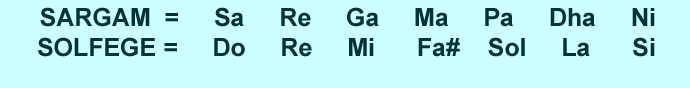 En su forma tradicional de 6 agujeros, las notas llevan una secuencia parecida a la escala Lidia moderna (escala mayor con la cuarta elevada), con la salvedad que la digitación se inicia con los tres orificios inferiores abiertos. Se puede hacer un equivalente entre las denominaciones de notas del sistema hindú (Sargam) y el europeo (Solfege) de la siguiente manera: