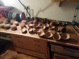 La planta del cocotero viene de las orillas de playas tropicales; de su fruto se extrae una pulpa comestible y agradale que alberga una bebida refrescante. En la construcción de instrumentos, es la cáscara seca la que permite hacer algunos trabajos.